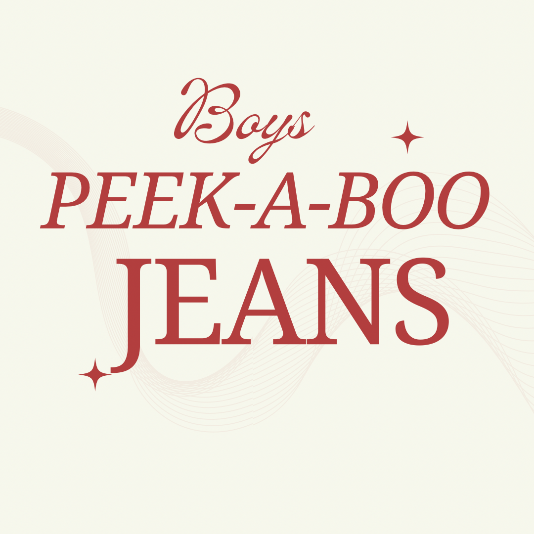 ▪️Boys hand distressed peek-a-boo patch denim jeans