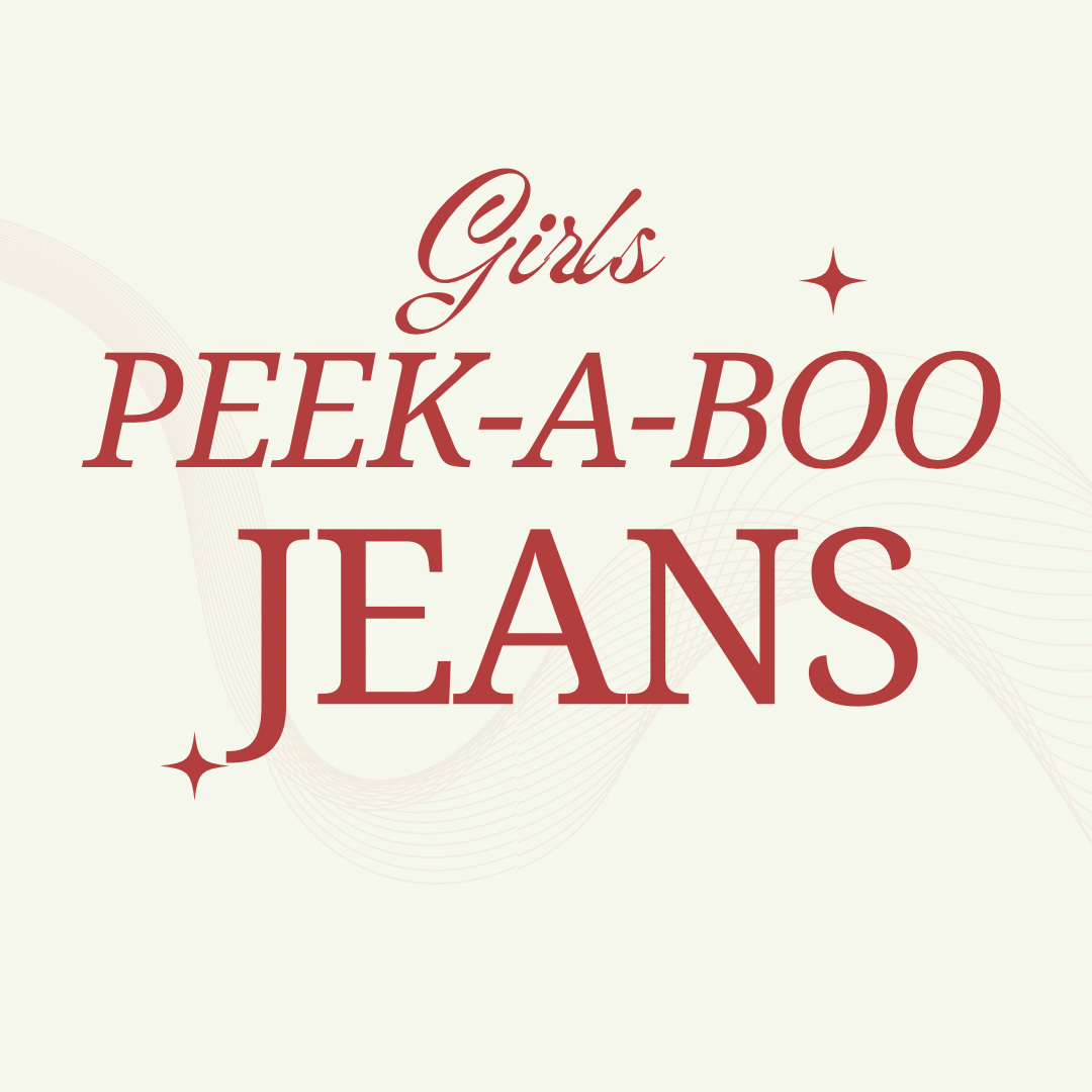 ▪️Girls hand distressed peek-a-boo patch denim jeans